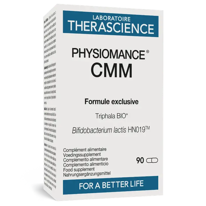 PHYSIOMANCE®CMM est une formule synergique et innovante associant la souche probiotique Bifidobacterium lactis HN019™, dosée à 10 milliards d’UFC**, à un extrait de Triphala BIO* titré à 1 g. La souche HN019™, cliniquement documentée pour sa contribution à l’équilibre de la flore intestinale avec un excellent profil de tolérance. Le Triphala BIO*, association traditionnelle ayurvédique de trois fruits — amla, bibhitaki et haritaki — est ici utilisé sous forme de poudre certifiée issue de l’agriculture biologique, sans excipient, pour une naturalité maximale. La formule bénéficie d’une biodisponibilité optimale grâce à ses gélules gastro-résistantes DR Caps™, 100 % végétales, permettant une protection des actifs.